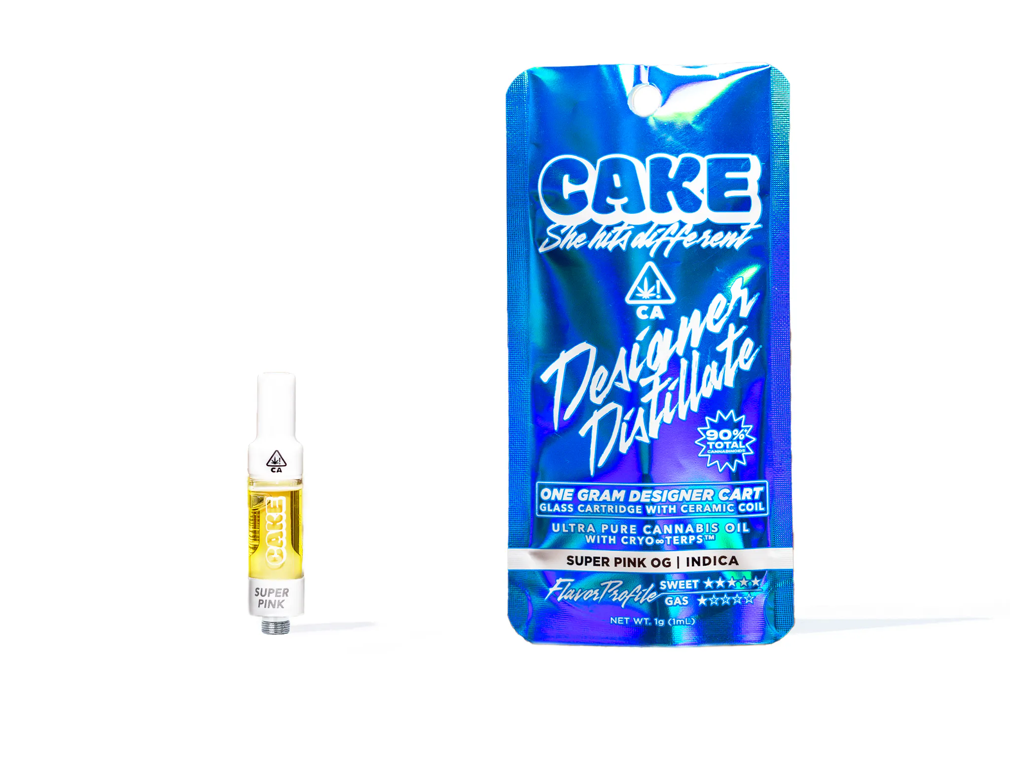 Introducing Designer Distillate by CAKE She Hits Different. Embark on an interstellar journey with our game-changing 1 gram glass ceramic cartridge. 90%+ THC potency. For best experience use with CAKE She Hits Different Batteries available at shehitsdifferent.com