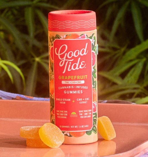 Good Tide Grapefruit THC:CBD:CBC gummies pair a Sativa single-strain rosin with the mood-boosting effects of CBC for citrusy, decadent treat that will have you feeling your very best with every bite. Get a front row seat to bliss.