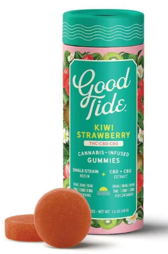 Good Tide Kiwi Strawberry is delivering a harmonious blend of THC, CBD, and CBG in every bite. Infused with single-strain, solventless hash rosin and blended with real kiwi-strawberry purée, these gummies offer a vibrant, fruit-forward flavor and a balanced, uplifting high. They’re perfect for resetting your day—anytime, anywhere.