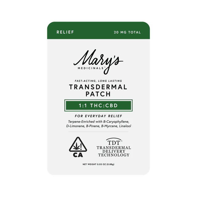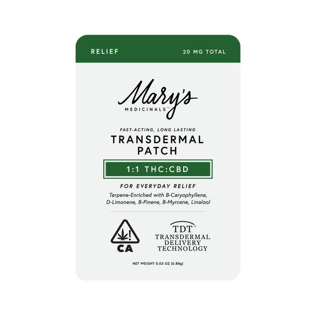 Our Relief Transdermal Patch with a 1:1 CBD:THC ratio is designed to promote relief from common aches and pains in your daily life. Our Everyday Relief products are formulated with natural ingredients that provide systemic relief from daily stressors. Winner of the 2023 Michigan and SoCal High Times Cups Mary’s Medicinals Relief Transdermal Patch is sure to be a winner in your book as well.