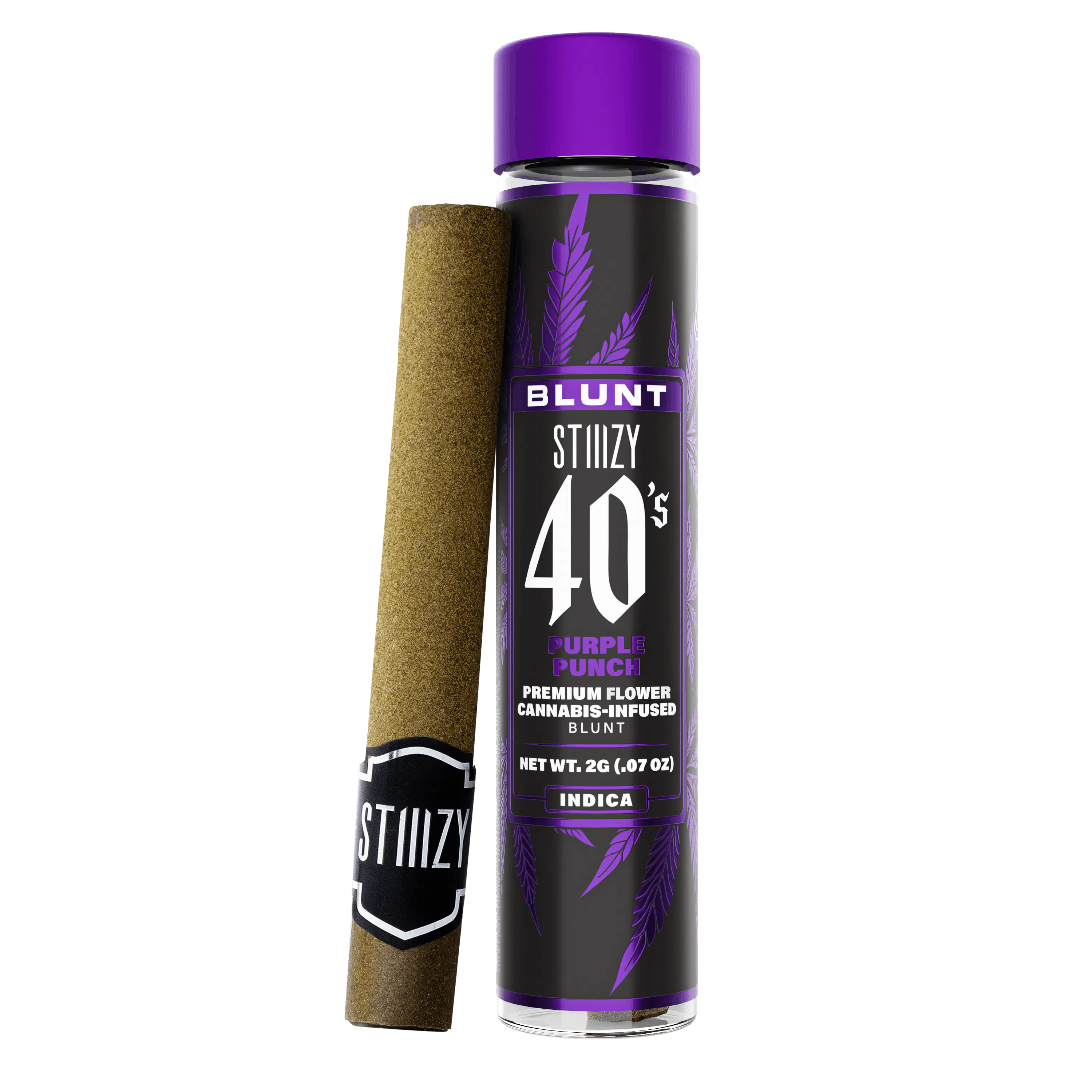 Stiiizy 40s blunts are rolled with 100% tobacco free, kief dusted hemp wraps, secured tightly around a glass tip. We’ve packed each infused blunt with high quality indoor flower so that every inhale is just as good as every exhale. Stiiizy 40s Blunts are reinventing the way you get high by being the first to introduce 40%+ THC potency with live resin infusion. Pass the blunt.